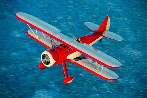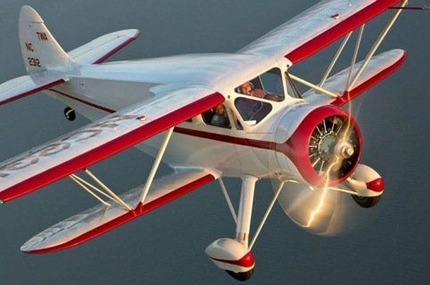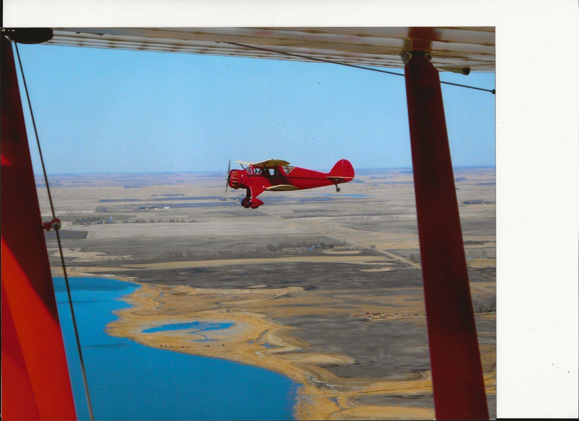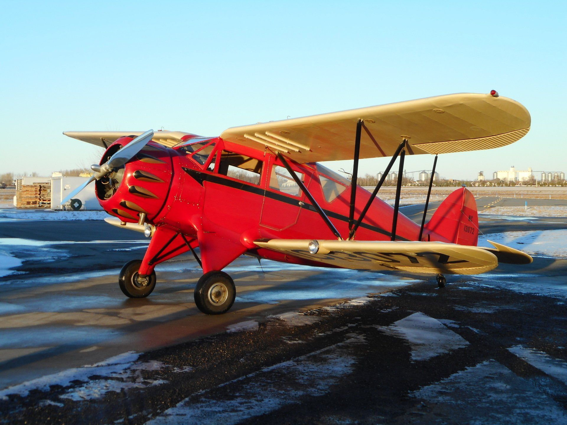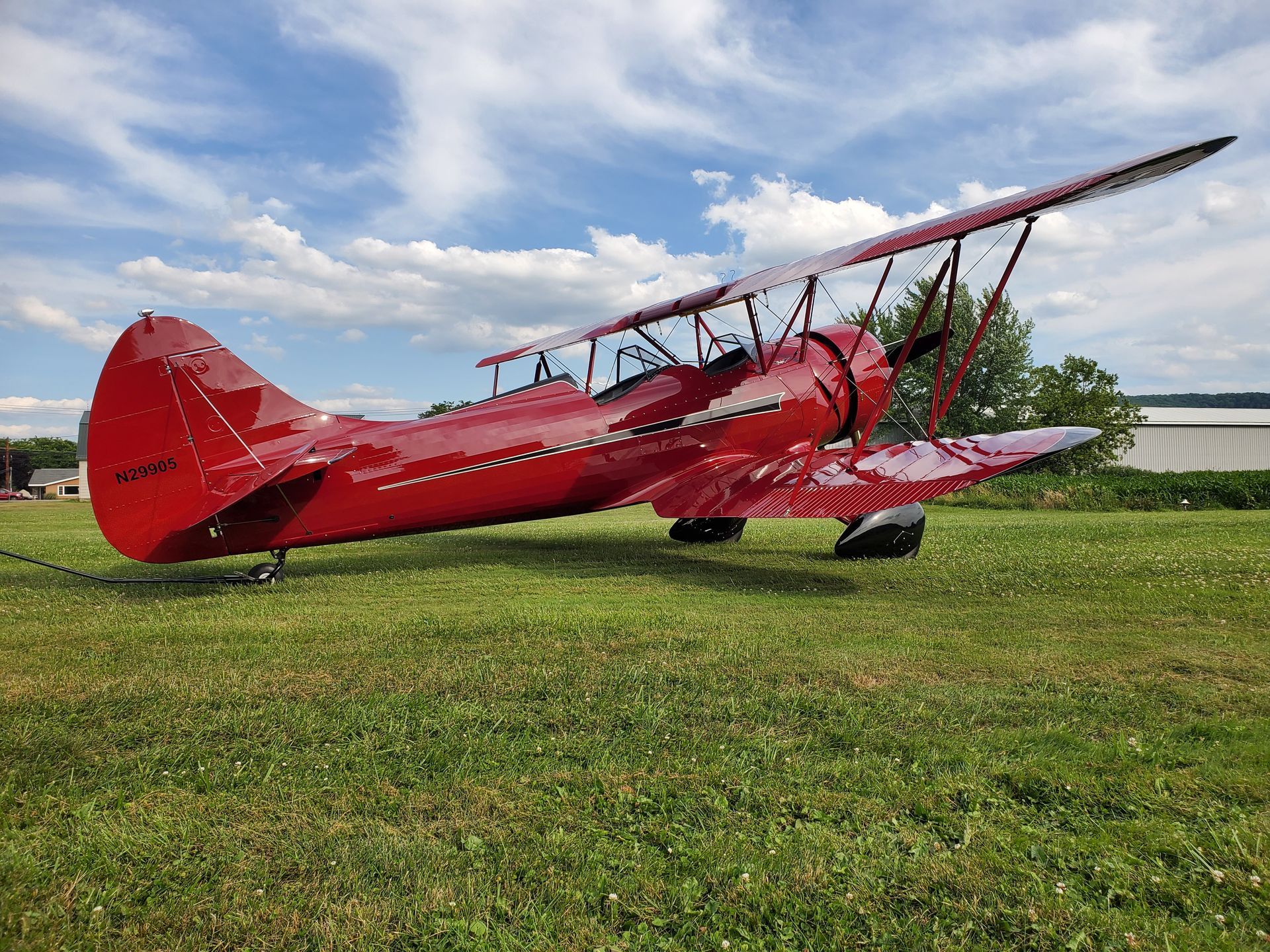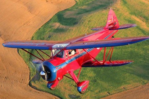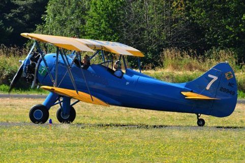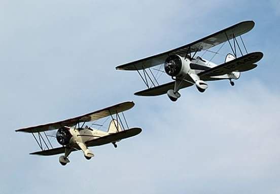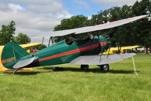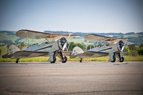Chris Woods' 1933 Waco UBF-2, 13071(Left) next to Scott and Annie Woods' 1932 Waco UBF-2, 12443(right) at Petaluma Municipal Airport.
